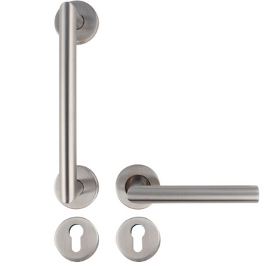 Manija Yale Milán para cerradura de embutir. Cuerpo en acero inoxidable.